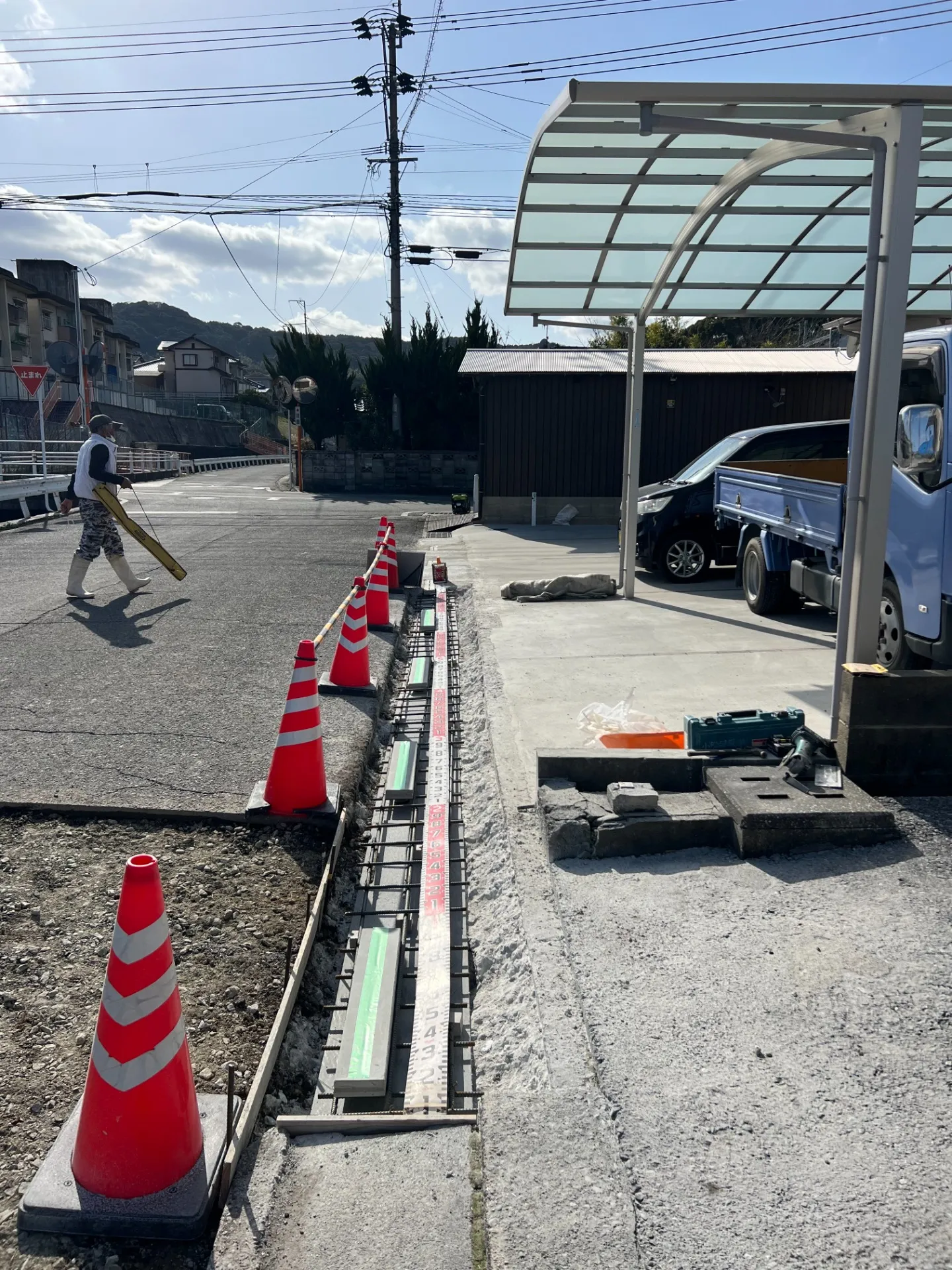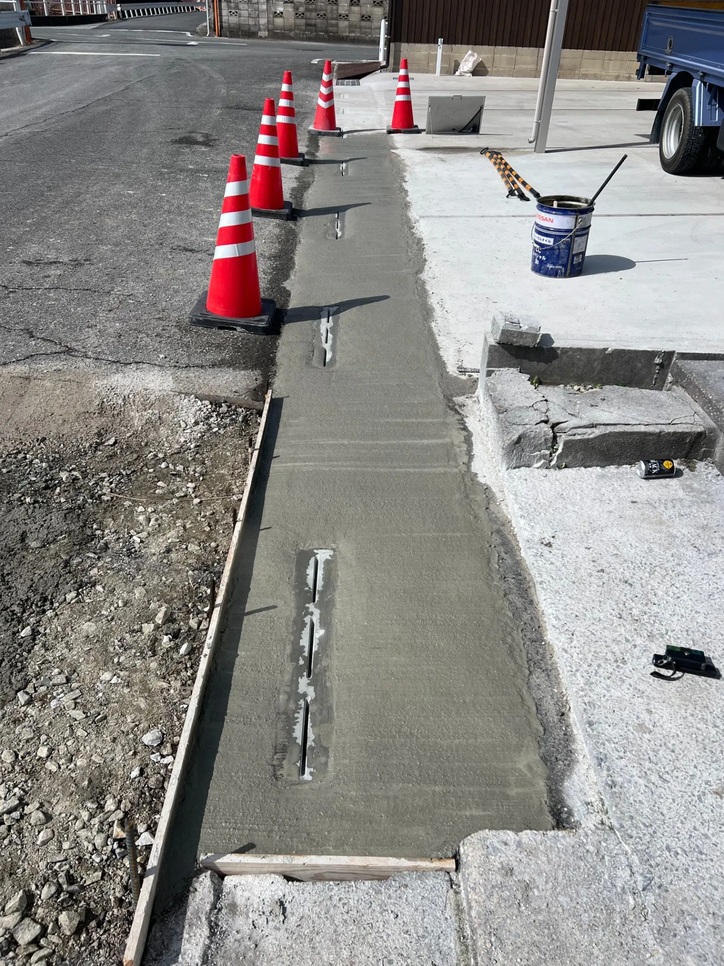 KCフォームとは既存の側溝を10~15センチ斫り、そこにKCフォームという板材を引き、